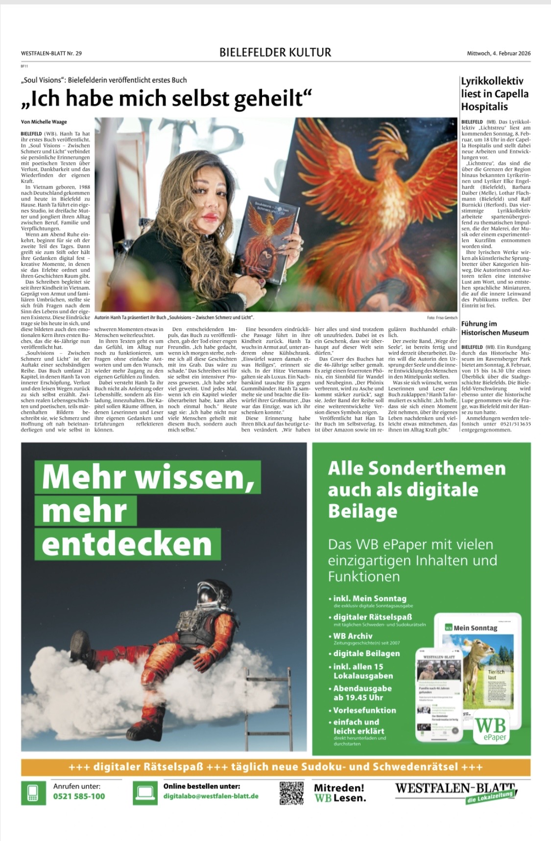 Die Autorin Hanh Ta wurde mit ihrem Buch Soulvisions – Zwischen Schmerz und Licht bereits in regionalen Medien vorgestellt.